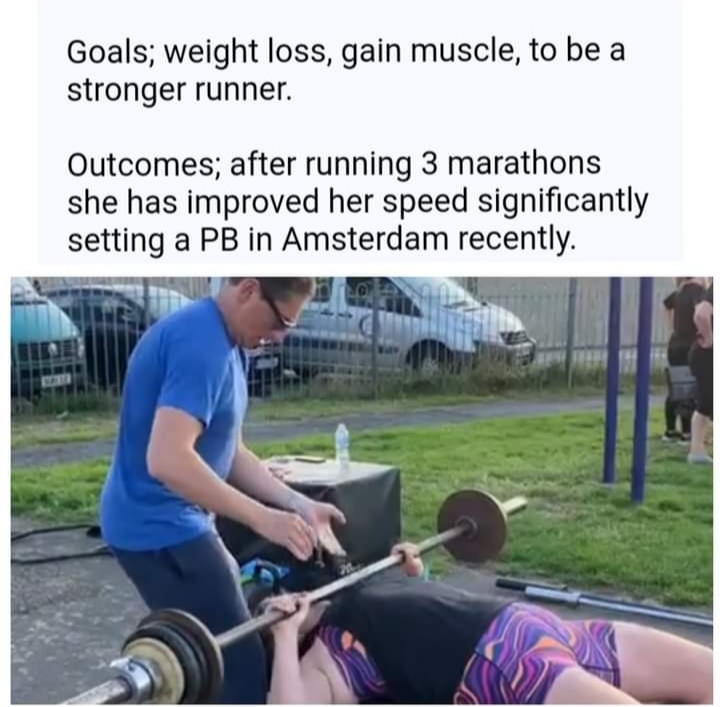My goals changed as we progressed and my confidence grew . I started running alongside doing the weights and really enjoy both . Martin always makes the sessions fun and adapts to individual needs and goals. Martins support with my running has been invaluable seeking advice for me and helping me to gain more knowledge from a very experienced runner (also a client of his).
